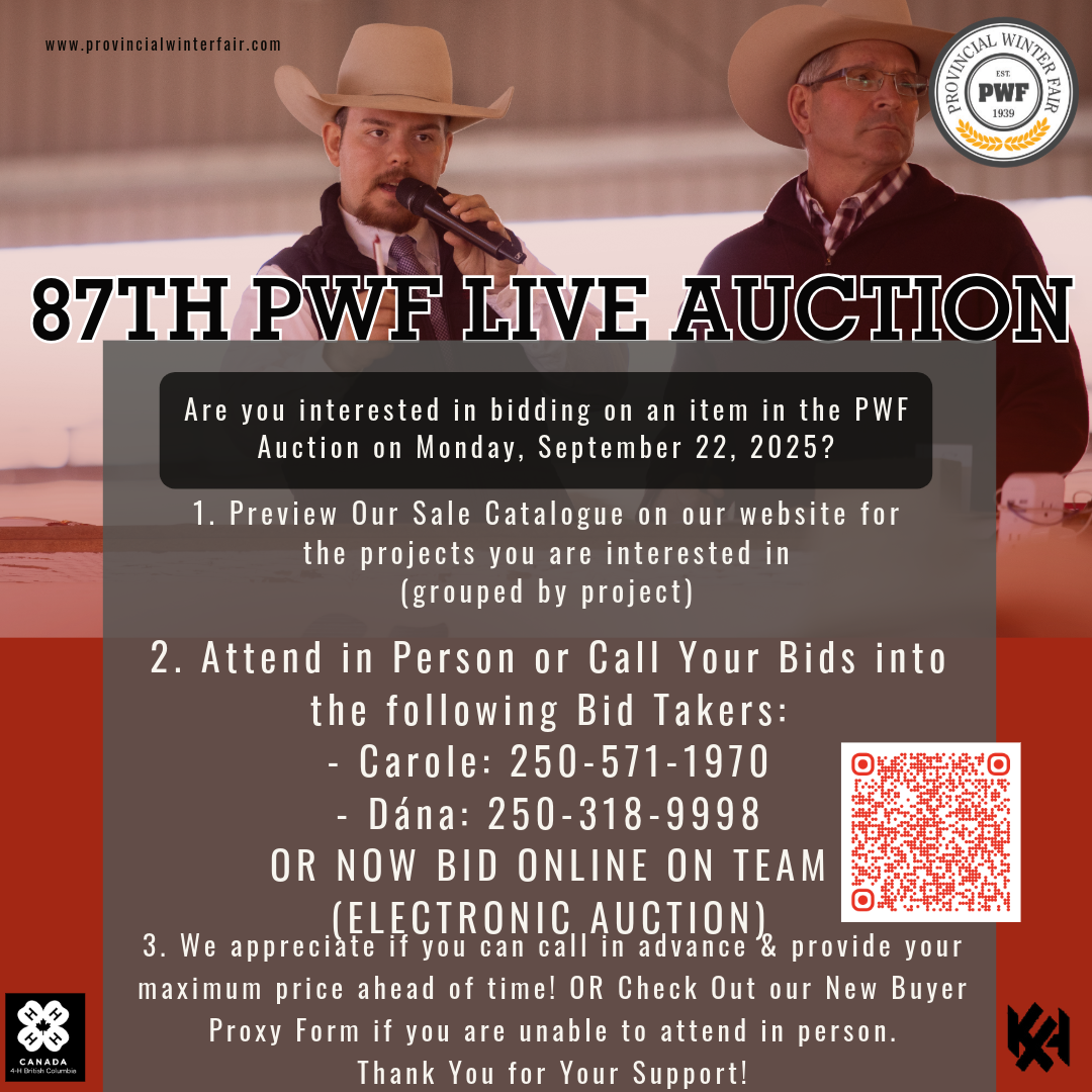 2. If unavailable to attend in person, call your bids in to the following bid takers ahead of time (ideally first thing in the morning, or prior to the fair as sale day is hectic).